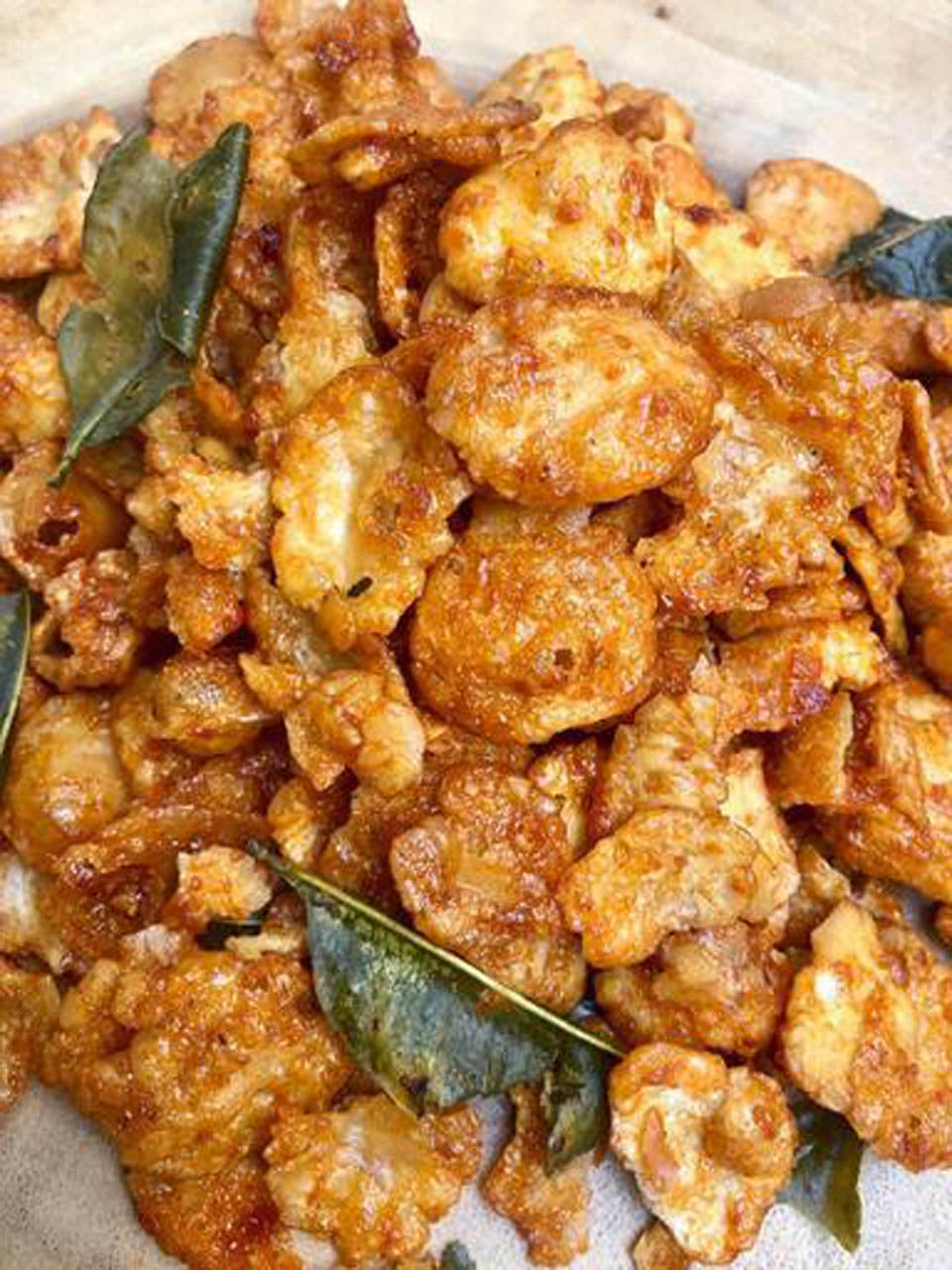 Savour the bold, nutty crunch of melinjo seeds uplifted by the delicate fragrance of kaffir lime leaves, mixed right into every cracker.
